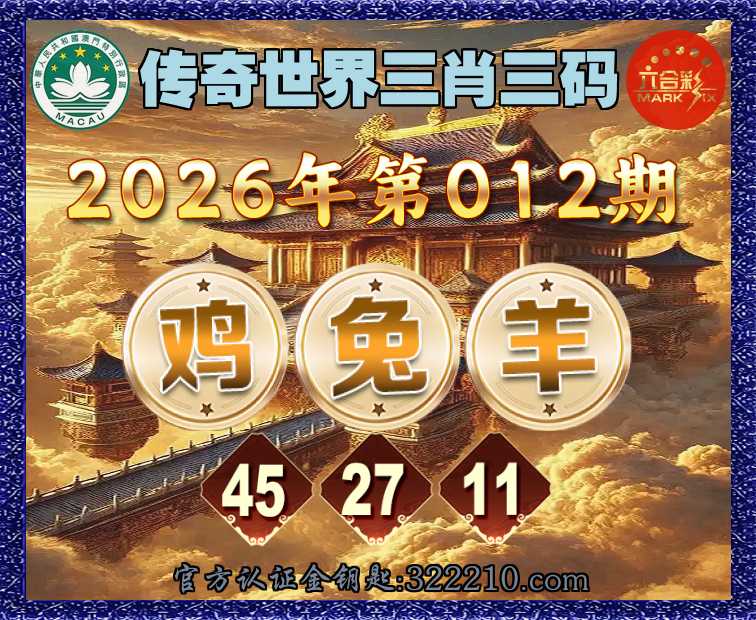 012期: 传奇世界 🤡三肖三码🤡【鸡兔】【45.27.11】开:羊11