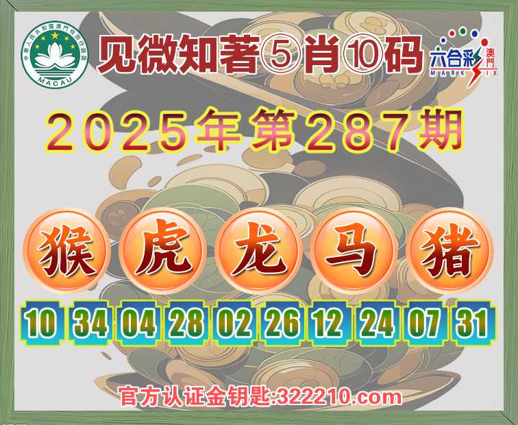287期:〖见微知著〗 ⛩️⑤肖⑩码⛩️【虎龙马猪】开:猴34