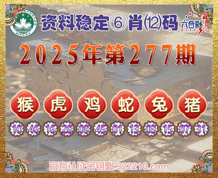 277期:《资料稳定》 ♠️⑥肖⑿码♠️【猴鸡蛇兔猪】开:虎16