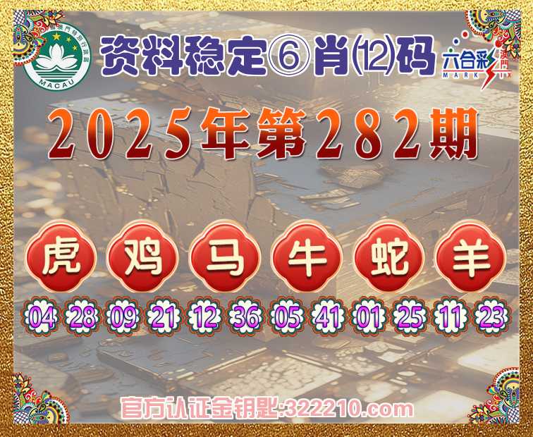 282期:《资料稳定》 ♠️⑥肖⑿码♠️【虎鸡马蛇羊】开:牛41