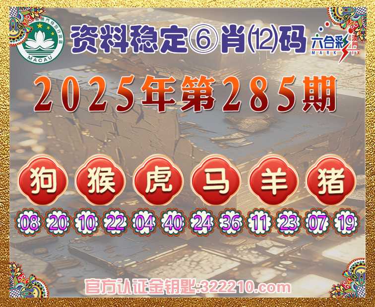 285期:《资料稳定》 ♠️⑥肖⑿码♠️【狗猴虎羊猪】开:马24