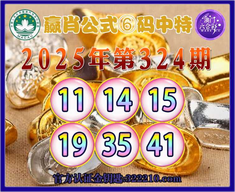 324期:《赢肖公式》 🥉⑥码中特🥉【11.14.15.19.35.41】开:15