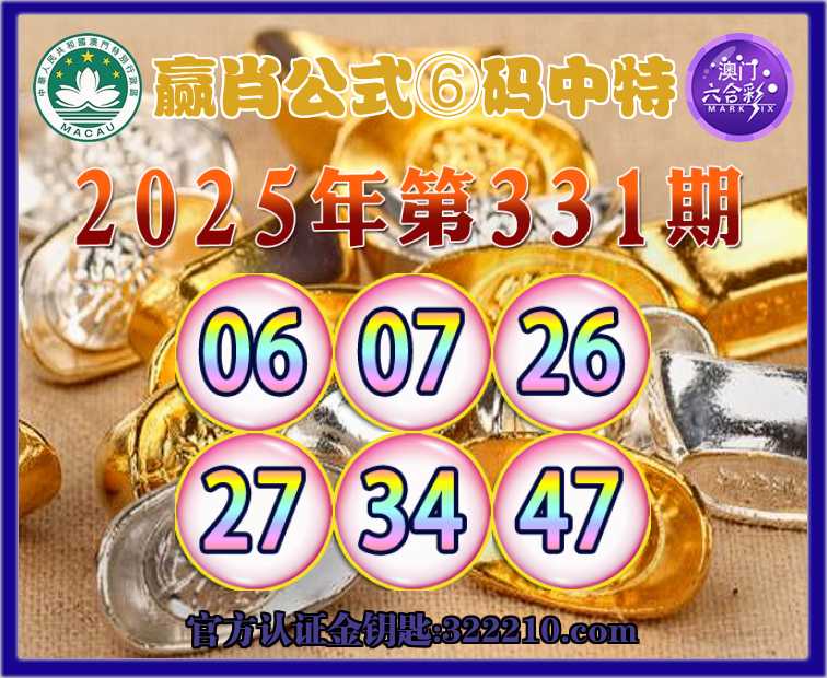 331期:《赢肖公式》 🥉⑥码中特🥉【06.07.26.27.34.47】开:26