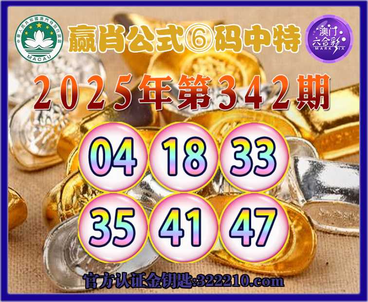 342期:《赢肖公式》 🥉⑥码中特🥉【04.18.33.35.41.47】开:00准